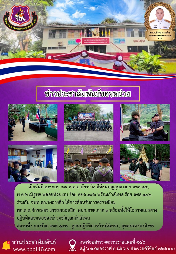 เมื่อวันที่ 1 พ.ค. 67 เวลา 17.00 – 18.20 น. พ.ต.ท.ณัฐพล พลอยท้วม ผล.ร้อย ตชด.146 ได้มอบหมายให้ ร.ต.อ.สุวิพล จันทร์แย้ม รอง สวป.(ป) พร้อมพวกรวม 4 นายและข้าราชการตำรวจจิตอาสา กก.ตชด.14 รวม