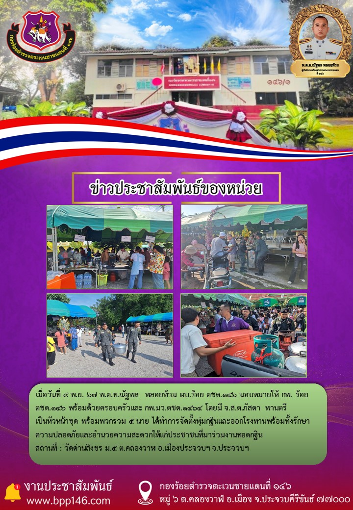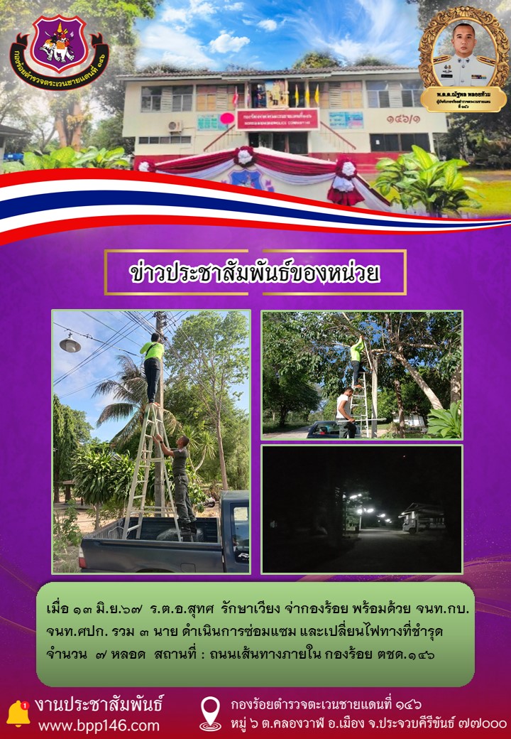 เมื่อวันที่ 1 พ.ค. 67 เวลา 17.00 – 18.20 น. พ.ต.ท.ณัฐพล พลอยท้วม ผล.ร้อย ตชด.146 ได้มอบหมายให้ ร.ต.อ.สุวิพล จันทร์แย้ม รอง สวป.(ป) พร้อมพวกรวม 4 นายและข้าราชการตำรวจจิตอาสา กก.ตชด.14 รวม